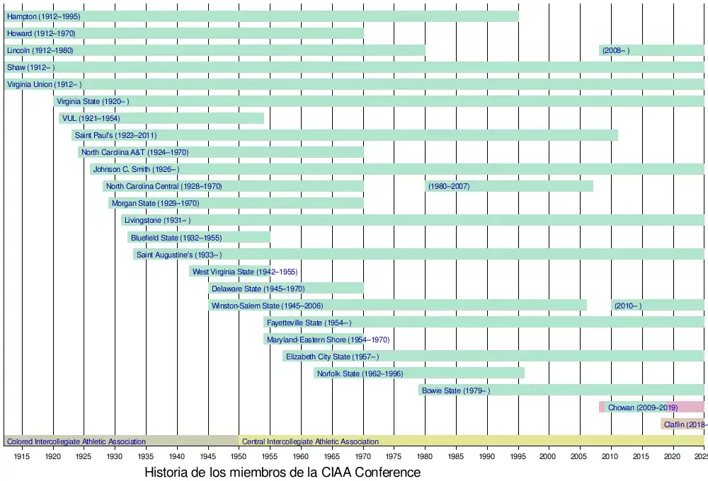La CIAA, fundada en el campus del Instituto Hampton (hoy en día Universidad Hampton) en 1912 es la conferencia universitaria afroestadounidense más antigua de los Estados Unidos. Fue conocida originalmente como Colored Intercollegiate Athletic Association, y adoptó su nombre actual en diciembre de 1950.