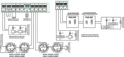 Son centrales de incendio diseñadas para realizar extinción automática. Trabajan con relés cruzados que se activan únicamente cuando la zona A y zona B activan detectores. Si se activa únicamente la zona A o únicamente la zona B pero no ambas, entonces únicamente se activarán las sirenas pero no se activará la extinción. Los agentes que se utilizan para extinciones son: