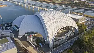 El complejo fue diseñado por el Environment Design Institute, una firma de arquitectura de Tokio.[1] Fue encargado por la Autoridad Portuaria, una institución del Gobierno Metropolitano de Tokio. El edificio está construido en gran parte de acero-hormigón reforzado excepto el techo. El diseño estructuralfue diseñado por Kozo Keikaku Engineering.[2] El complejo fue completado en marzo de 1993.