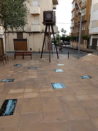En la pequeña plaza que sirve de antelación al centro museístico podemos observar el Monumento a Manuel Falces, fotógrafo almeriense.[2]