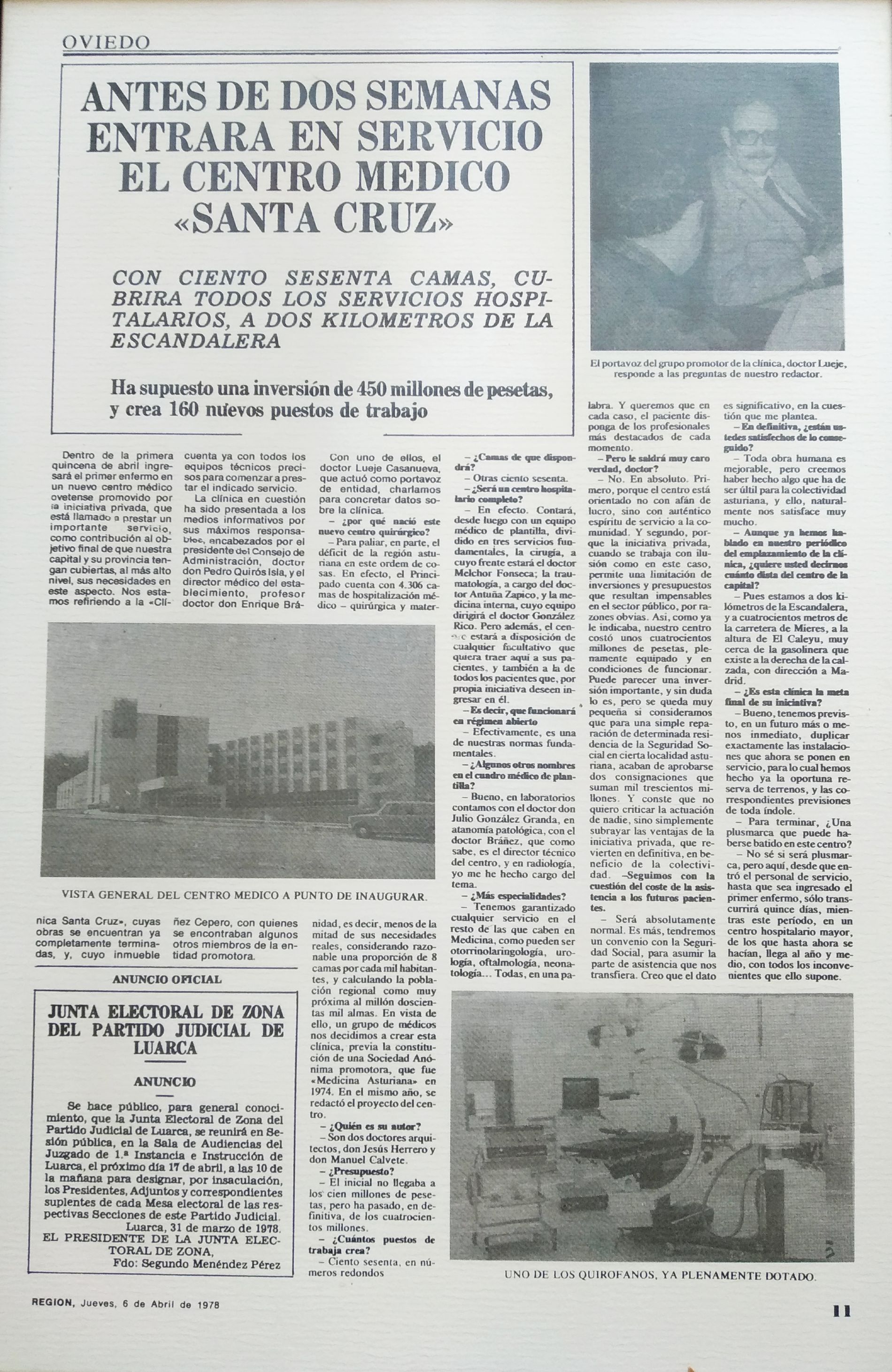 - ↑ «Antes de dos semanas entrará en servicio el Centro Médico Santa Cruz». Región. 6 de abril de 1978.