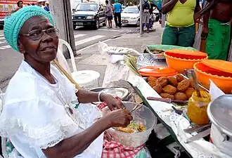 Es un oficio inicialmente hecho por mujeres esclavas y libertas, que comercializaban principalmente el "acarajé"(hecho de una especie de judías, el "feijão-fradinho", y cebolla, frito en el aceite de "dendê", y servido con camarón, pimienta, "vatapá" o "caruru") para el sustento de sus familias, además de cumprir sus obligaciones religiosas en los terreros de "candomblé". Sus principales características son sus faldas redondas, una especie de turbante en la cabeza y sus collares, siempre con bandejas de "acarajé" y sus acompañamientos, además de otros platos típicos: "cocada" y "cocada- preta", "abará", "bolo de estudante", "lelê", "queijada" y "passarinha"