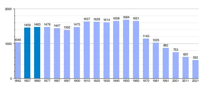 | Gráfica de evolución demográfica de Cerezo de Río Tirón[3] entre 1842 y 2021 |