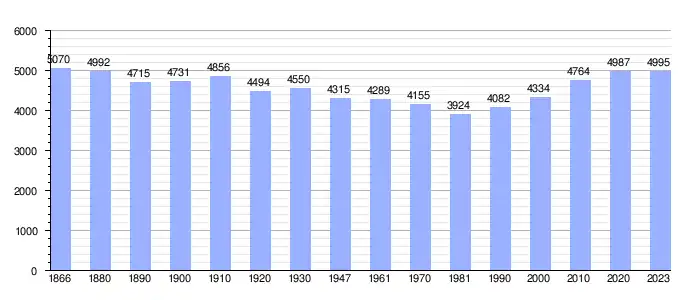 El siguiente gráfico refleja la evolución demográfica de la localidad, incluyendo los municipios incorporados después de efectuada la fusión el 1 de enero de 1977.