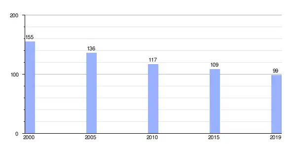 | Gráfica de evolución demográfica de Cervantes entre 2000 y 2019 |