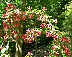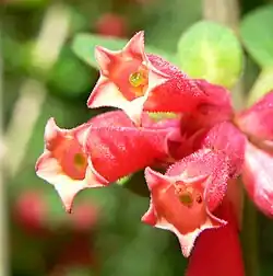 Se trata de un árbol de hoja perenne o un arbusto desgarbado que alcanza un tamaño de más de dos metros de altura. Los tallos, y sobre todo las nuevas ramas, a veces, son de color púrpura y un poco peludas. Las hojas son peludas, de forma ovalada, verdes de hasta 13 centímetros de largo. Abundantes inflorescencias aparecen en las puntas de las ramas madres, cada una con un grupo denso de hasta 10 flores rojas peludas. Cada flor tubular es de 2 o 3 centímetros de largo, contando el cáliz alargado de sépalos y la larga corola. El fruto es una baya de unos 1,5 centímetros de ancho, que es de color rojo en el exterior y el interior blanco con cerca de 10 pequeñas semillas de color marrón.