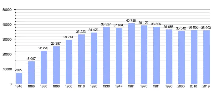 Todos los datos históricos relativos al actual municipio, el siguiente gráfico refleja su evolución demográfica, incluyendo municipios después de efectuada la fusión el 1 de enero de 1977.