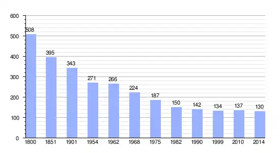 Los datos demográficos contemplados en este gráfico de la comuna de Chalonnes-sous-le-Lude[4] se han cogido de 1800 a 1999 de la página francesa EHESS/Cassini, y los demás datos de la página del INSEE.[5]