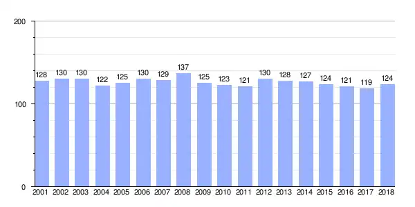 | Gráfica de evolución demográfica de Chamín de Arriba entre 2001 y 2018 |