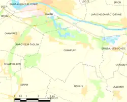 - Situación de Champlay en un mapa de Francia y de comunas limítrofes Archivado el 7 de enero de 2009 en Wayback Machine. (en francés)