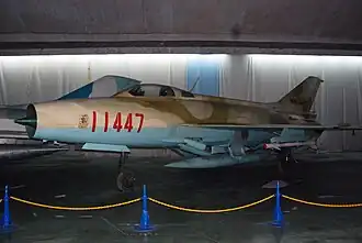- Chengdu J-7 - Versión china del Mikoyan-Gurevich MiG-21; las versiones de exportación se conocen como "F-7"
