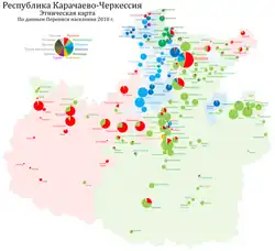 Karacháyevo-Cherkesia es una de las repúblicas étnicas de Rusia, que representa principalmente al pueblo indígena caucásico-turco karachái y al pueblo cherkeso o circasiano. Los karachái forman el grupo étnico más grande, con alrededor del 44% de la población, seguidos por los rusos étnicos (27%) y los cherkesos (13%). Los cherkesos pertenecen principalmente a las tribus beslenéi y cabardinos. La república tiene cinco idiomas oficiales: ruso, abasio, cherkeso (cabardino), el karachái-bálkaro y el nogayo.[2]