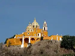 Cholula, oficialmente San Pedro Cholula, y aún conocida como San Pedro Cholula —nombre de su municipio—, es una ciudad del estado mexicano de Puebla, que forma parte de la Zona Metropolitana de Puebla-Tlaxcala[8] y se encuentra prácticamente conurbada con la capital del estado, la ciudad de Puebla de Zaragoza; se localiza en el asentamiento de la antigua ciudad prehispánica de Cholula, de la que recibe el nombre. Es cabecera del municipio de San Pedro Cholula. En este municipio han sido filmadas algunas producciones cinematográficas como "Enamorada" (1946) del director Emilio "El Indio" Fernández, así mismo su versión en lengua inglesa titulada "The Torch" (1950). De igual manera, fue grabada "Talpa" (1955) del director alemán Alfredo B. Crevenna y basada en el cuento de Juan Rulfo ; así cómo "La fórmula secreta" (1965) de Rubén Gámez, la cual va acompanada de una narración escrita por Juan Rulfo y leída por Jaime Sabines.
