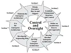 El equipo de arquitectura también genera un plan de secuencia para la transición de sistemas, aplicaciones, y prácticas de negocios asociadas que son indicadas en un análisis detallado. La arquitectura se emplea en el control de la planificación de capital e inversión. Los procesos de ingeniería de la empresa y el programa de gestión de procesos se realizan a través de proyectos priorizados, proyectos incrementales y la inserción de nuevas tecnologías emergentes. Por último, las arquitecturas se mantienen mediante una modificación continua para reflejar la base actual de la empresa y los objetivos de negocio, metas organizacionales, visiones, tecnología e infraestructura.[1]