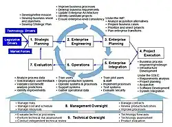 El ciclo de vida empresarial es un concepto clave de la arquitectura empresarial, de la Ingeniería de la empresa[2] y la Ingeniería de Sistemas.[3] El proceso de arquitectura empresarial está muy relacionado con procesos como el ciclo de sistemas de gestión o el sistema de ciclo de desarrollo de vida, y tiene propiedades similares a las que podemos encontrar en el ciclo de vida del producto.[4]
