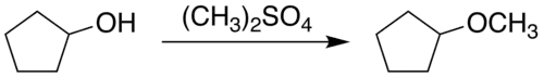 1) Mediante la metilación del ciclopentanol.