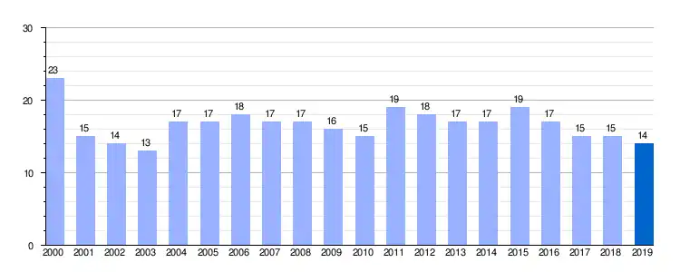 | Gráfica de evolución demográfica de Cidad de Valdeporres entre 2000 y 2019 |