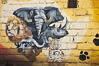 El término cinco grandes de África,[1] se refiere a un quinteto de especies animales africanos conformado por el león, el leopardo, el rinoceronte negro, el elefante africano y el búfalo cafre.[2] El término "cinco grandes de África" fue acuñado por aficionados a la caza mayor y se refiere a las cinco presas más difíciles en una caza a pie. Posteriormente el término fue adoptado por guías turísticos de safari con fines de mercadeo.[3] El término es usado en la mayoría de las guías turísticas y de vida silvestre que discuten safaris africanos. Las especies que conforman los cinco grandes fueron elegidas por la dificultad de cazarlas y el grado de peligro involucrado, en lugar de su tamaño.[3][4]