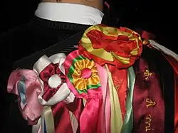 Los tunos o tunas, las fijan en la espalda de la capa de tuna.