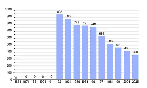 | Gráfica de evolución demográfica de Cinte Tesino entre 1861 y 2025 |