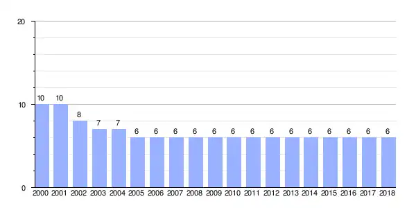 | Gráfica de evolución demográfica de Ciocende entre 2000 y 2018 |