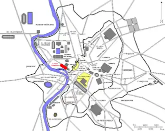 Localización del Circo Flaminio en la Roma antigua (en rojo) | ||