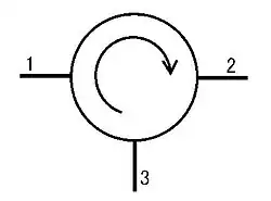 Toda la energía que incide por la puerta 1 se transmite a la puerta 2; la incidente por la puerta 2 pasa a la 3 y la incidente por la puerta 3, sale por la 1. La transmisión en sentido inverso no se produce.
