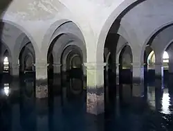 - la cisterna propiamente dicha, constituida por un volumen con forma de T despojado de cualquier decoración estética.