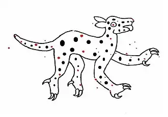 La constelación de Ocelotl sobre la Osa Mayor; los puntos rojos son las estrellas del firmamento.