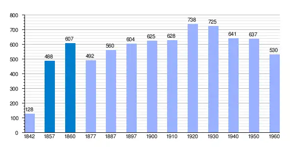 | Gráfica de evolución demográfica de Claravalls[3] entre 1842 y 1960 |