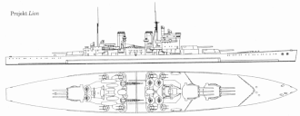La elección de un armamento principal de 355 mm y una mezcla de torretas dobles y cuádruples en la clase King George V, se había debido a la adhesión al segundo tratado naval de Londres, el cual, limitaba el desplazamiento estándar de los buques capitales a 35 000 t y el tamaño de su artillería principal a 355 mm. Los clase Lion eran una versión agrandada, debido a que el Nuevo tratado, permitía hasta 45 000 t y armamento de hasta 406 mm. Fueron diseñados para desplazar entre 40.500[1] y 42.500[2] t estándar, y portar nueve cañones de 406 mm en tres torres triples, al igual que los acorazados de la clase Nelson de 1925, aunque , aunque tanto los cañones, como las torretas, eran nuevos diseños.