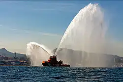 Como sistema de lucha pasivo, dispone de un sistema de pulverización de agua, que crea una cortina de protección alrededor del remolcador, lo que permite acercarse a otros buques con incendios.[1][18]