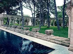 Este claustro de estilo románico rodea la piscina del Mas del Vent, reconvertido en una finca de lujo de 22 hectáreas gestionada por la empresa Explotaciones Agrícolas y Forestales Brugarol.[21]