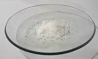 El cloruro de estroncio (SrCl2) es una sal de estroncio y cloro. Como todos los compuestos de estroncio, emite un color rojo brillante en una llama, de hecho, se usa para el rojo de los fuegos artificiales. Sus propiedades químicas se encuentran entre las del cloruro de bario, que es más tóxico, y el cloruro de calcio