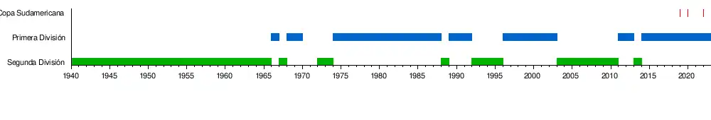 En lo que respecta al fútbol profesional, el club se afilió a AFA en 1940 y en 1966 ganó por primera vez el ascenso a la Primera División. Desde entonces jugó allí mayormente, alternando con algunos períodos en segunda división.