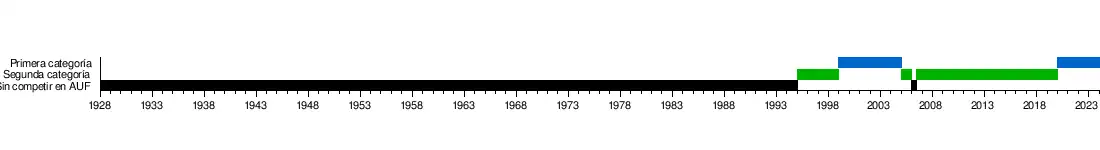 | 2017 | 7º | 39 | 28 | 10 | 9 | 9 | 29 | 31 | -2 | Pierde play-off de ascenso en cuartos de final con Central Español. | |