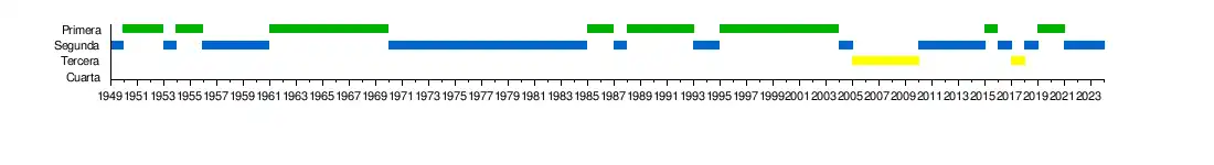 Categorías en la cual el club jugó a lo largo de su historia. La tercera división fue creada en 1939, en 1997 se creó la cuarta división.