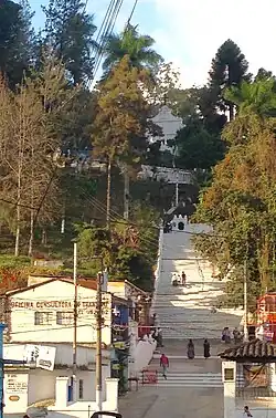 ![]() ![]() Ferrocarril VerapazEl Ferrocarril Verapaz de Guatemala fue un ferrocarril que sirvió a la ciudad de Cobán y el departamento de Alta Verapaz entre 1894 y 1965. Su principal objetivo era el transporte de café de las fincas alemanas en Alta Verapaz hasta la costa del Atlántico a través de un ferry que zarpaba del puerto fluvial de Panzós y navegaba por el río Polochic hasta el Lago de Izabal y de allí a Puerto Barrios. AéreoEl Aeropuerto de Cobán que sirve a la ciudad y a la Conurbación Metropolitana de las Verapaces, es operado por la Dirección General de Aeronáutica Civil de Guatemala y opera solamente vuelos chárter con la empresa aérea Coban Air a Salamá y la aerolínea TAG Airlines a la Ciudad de Guatemala. El aeródromo se ubica al oeste de Cobán y tiene una pista de asfalto de 1018 metros de longitud en la dirección 02/20. AutobusesLa Terminal de buses de Cobán, es la más grande y concurrida en la ciudad ya que a diario ingresan cientos de autobuses de diferentes municipios del departamento de Alta Verapaz y decenas de buses pullman provenientes de la Ciudad de Guatemala y de Petén. Cobán al ser una ciudad turística es visitada por guatemaltecos y extranjeros por lo que también es común ver una alta cantidad de autobuses privados de turismo. La ciudad cuenta con diecinueve terminales de buses urbanos e interurbanos y múltiples áreas de trasbordo, para el servicio de buses urbanos en la ciudad existen 11 líneas a distintas áreas con un circuito definido y 9 líneas de buses interurbanos que conectan con otros departamentos del país.[69] PatrimonioIglesia del Calvario![]() Está situada en la cima de una colina a escasas 5 cuadras (unos 500 metros) del parque central de Cobán, es un bello mirador urbano al cual se accede por medio de una escalinata de 135 gradas. Fue construido a mediados del siglo xix, por la comunidad indígena, bajo la dirección del cacique Francisco Pop. Próximo a la iglesia, existe un cementerio que fue cerrado por su proximidad con la ciudad. En la iglesia se venera al Cristo del Calvario, imagen esculpida por Quino Cataño. Y todos los domingos se celebra, misa en kekchí y en español. Vivero «Verapaces», cultivo de orquídeas![]() La flor representativa de Cobán es la orquídea conocida como «Monja Blanca», la cual es también la Flor Nacional de Guatemala. En 1933, Leticia M. de Southerland, presidenta de la exposición internacional de flores celebrada en Miami Beach (Florida, envió una sugerencia al gobierno de Guatemala de que el ejemplar expuesto de Lycaste skinneri alba fuese designado como flor nacional. Esta sugerencia fue consultada por el presidente de la República, general Jorge Ubico Castañeda, con varios especialistas —entre ellos Ulises Rojas y Mariano Pacheco H. y entidades como la Biblioteca Nacional de Guatemala y la Sociedad de Geografía e Historia de Guatemala—. Los expertos tomaron en cuenta la hermosura y rareza de esta flor y estuvieron de acuerdo con la sugerencia, por lo que el 11 de febrero de 1934 la presidencia de la República emitió un decreto dando a la «monja blanca» la denominación de Flor Nacional.Gobierno de Guatemala, s.f. El vivero «Verapaces» un singular vivero de orquídeas, ya que cuenta con una de las colecciones más completas del país; posee más de sesenta mil ejemplares, pertenecientes a setecientas cincuenta variedades, incluyendo doscientas orquídeas miniatura. Un bosque formado por helechos gigantes denominados 'Chut' (especie amenazada), de cuyo tronco se tallan las macetas para cultivar las orquídeas, sirve de sombra para sus plantaciones y también tiene una colección de licopodios y bonsáis.[70] Cuevas de CandelariaEl parque nacional Cuevas de Candelaria es un sistema de cuevas y ríos subterráneos considerado como uno de los más grandes e impresionantes de América Latina. Además de su importancia espeleológica el sistema de Candelaria fue un sitio de peregrinación de gran importancia para la civilización Maya y es, hoy en día, refugio de una gran diversidad de flora y fauna. Parque nacional Laguna LachuáLa Laguna Lachuá, es una reserva natural a la cual se puede llegar a través de la carretera construida a través de la Franja Transversal del Norte. Canción a CobánHay una canción de la que todo cobanero se siente orgulloso. Fue escrita por Domingo Bethancourt, la letra es la siguiente: En Cobán yo disfruté del encanto de su suelo, las bellezas que admiré motivaron esta canción. En Cobán me quedaré disfrutando del paisaje y del clima encantador de Cobán, Ciudad imperial. [71] DeportesCobán ha sido destacado en el baloncesto y ha tenido las mejores escuelas para menores en este deporte; en varias ocasiones se ha coronado campeón nacional. Por otra parte, cuenta con un equipo en la Liga Nacional de Fútbol, el cual tiene mucho prestigio desde la segunda mitad del siglo xx, el Cobán Imperial, el cual fue el campeón Nacional en el Torneo de Clausura del año 2004. Desde 1974 se corre anualmente la Media Maratón de Cobán en el tercero o cuarto fin de semana de mayo. El creador de esta carrera fue Cayetano Gálvez. Se ha registrado más de siete mil corredores de todo el mundo en esta carrera. El evento es reconocido por su dificultad y una organización de clase mundial; es el evento deportivo más grande de Guatemala y una de las carreras más importantes de América Latina.[72] Ciudades hermanasOtras cabeceras departamentales