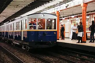 ![]() Formación La Brugeoise estacionada en la estación Perú de la línea A | ||