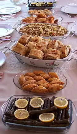 Cocina típica asiria; ejemplo de un tipo de comida servida en el oeste de Asia.