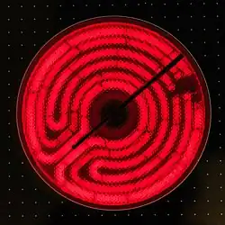 El calor de la resistencia se transfiere a la placa de cocción propiamente dicha, que puede ser de hierro fundido o de otros materiales, como la piedra de una ménsula. El material absorbe el calor y lo distribuye al recipiente o alimento que se va a calentar.