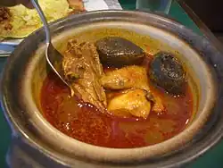 Un plato de peranakan por excelencia, el ayam buah keluak es único por su uso de las semillas del kepayang, un árbol alto nativo de los manglares de Malasia e Indonesia. La semilla en sí misma es venenosa si no está cocida, ya que contiene cianuro de hidrógeno, por lo que requiere una gran cantidad de preparación antes de poder ingerirse: las semillas primero se hierven y luego se entierran en cenizas, hojas de plátano y tierra durante más de un mes. El proceso de fermentación facilita la limpieza del cianuro. El pollo y semillas kepayang entonces se cuecen a fuego lento durante horas en una pasta de tamarindo y rempah.
