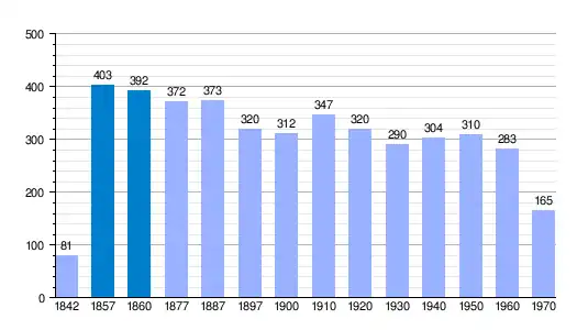 Población de derecho según los censos de población del INE. Población de hecho según los censos de población del INE.Entre el censo de 1857 y el anterior, crece el término del municipio porque incorpora a Brulles y Melgosa de Villadiego. |