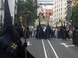 - Capuchón negro con el emblema (Un corazón atravesado por un puñal y rodeado por una corona de espinas) situado en la parte inferior