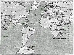 Tras la llegada de Cristóbal Colón a las Indias Occidentales en 1492 y las sucesivas exploraciones de las tierras americanas distintos cartógrafos comienzan a reflejar su existencia en los mapas, aunque tendiendo a vincular este Nuevo Mundo con el continente asiático conforme a la inicial concepción del propio Colón.