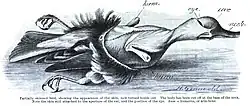 Las técnicas de conservación de aves se intentaron incluso desde principios del siglo XVI, como demuestran los escritos de Conrad Gesner y Pierre Belon. Belon dio instrucciones sobre la extracción de vísceras y el uso de sal para conservar especímenes de aves en su libro de 1555 sobre las aves. En el siglo XVII se perfeccionaron estas instrucciones y se utilizaron diversos conservantes, como ceniza (carbonato potásico), sal, azufre, alumbre, alcohol y diversos extractos de plantas.[15] En los primeros tiempos de las colecciones de aves, la mayoría de los especímenes se montaban en posiciones poco realistas, a menudo con las alas levantadas como si estuvieran a punto de emprender el vuelo. Se conservaban a la intemperie y los colores eran propensos a desteñirse y los propios especímenes a sufrir daños por escarabajos. En Berlín, J. L. Frisch empezó a utilizar frascos de cristal herméticamente cerrados para cada montaje con el fin de evitar los daños de las plagas. En esta época, el Conde de Reaumur, en el Museo de París, había conseguido encontrar técnicas para conservar los especímenes secos y sin pérdida de color.[16][17] Sin embargo, esta técnica era un secreto y más tarde se consiguieron resultados similares encurtiendo con sal, pimienta molida y alumbre y secando durante un mes con hilos que sujetaban el ave en posición natural. El uso de arsénico para conservar especímenes fue introducido por primera vez por Jean-Baptiste Bécoeur (1718-1777), pero este método no fue revelado públicamente hasta 1800 por Louis Dufresne en el Traité Élémentaire et Complet d'Ornithologie de Daudin (1800).[18] En las colecciones modernas, las aves recuperadas o recogidas pueden conservarse de varias maneras. La preparación más tradicional es una piel de estudio, en la que se retira casi todo el cuerpo del interior de la piel y se sustituye por algodón, de modo que el resultado final se asemeja a un ave tumbada boca arriba con las alas plegadas.[19] Se utiliza preferentemente el bórax como conservante, ya que es poco tóxico.[20] Esta postura estereotipada se desarrolló para poder guardar muchas pieles juntas en armarios y protegerlas de los daños causados por los insectos y la luz. Si se desea un esqueleto completo, se puede preparar una piel plana: se retiran cuidadosamente todos los huesos, músculos, tejido digestivo y otros tejidos blandos, y las plumas y la piel se estiran planas y se secan.[21]