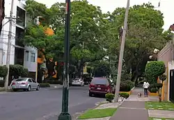 ![]() Vista de la colonia Del Valle, al fondo el World Trade Center México, y varios rascacielos en la avenida de los Insurgentes. | ||