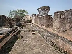 Este conjunto se encuentra muy deteriorado y solo es posible observar en su fachada principal, el inicio de una escalinata dividida por una alfarda central que abarca casi toda la extensión de la estructura. El basamento está construido con un núcleo de tierra apisonada recubierta con estuco. Algunos restos de ladrillos sobre el basamento indican que se derrumbaron de la parte superior.