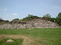 Está localizado en el extremo oeste de la Plaza Norte. Es el de mayores dimensiones y se eleva unos 20 m sobre el nivel de la plaza. En él se observan dos épocas constructivas sobrepuestas. De la más antigua elaborada con un núcleo de tierra cubierta con un aplanado de estuco, se encuentra expuesta la escalinata central formada por treinta y cuatro peldaños y delimitada con alfardas.[13]