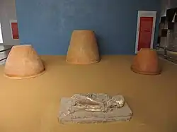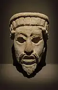 | Ofrenda funeraria encontrada en la zona arqueológica. | Cabeza de mujer elaborada en estuco. | Mascarón en estuco que adornaba los templos | Mascarón en estuco. | Mascarón que adornaba los templos. | |||